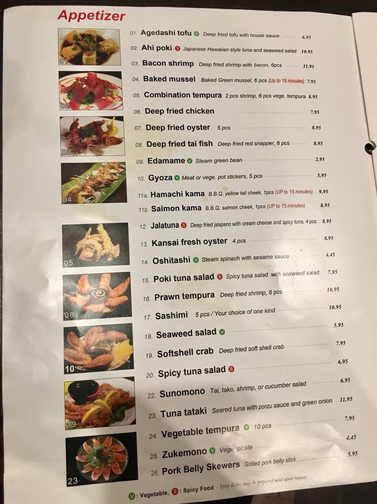 Deep-fried shrimp tempura with cucumber, avocado. Ask for vegetarian option.